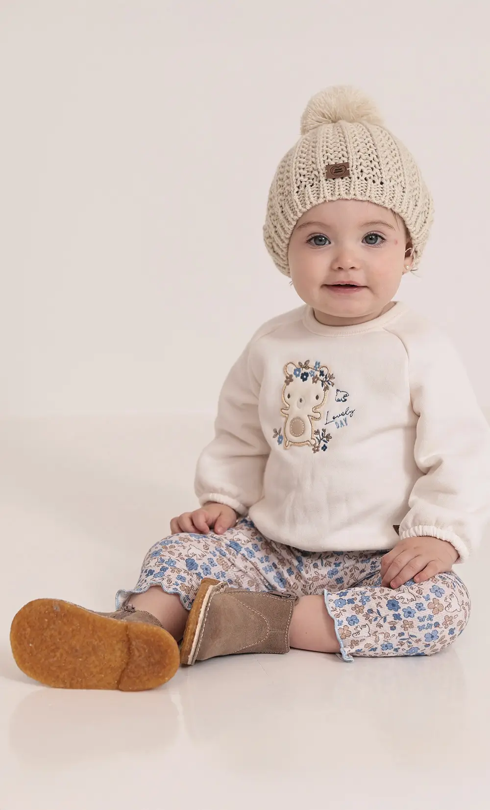 Buzo de rústico estampado. Tiene abertura con botón en la espalda. Composición: 88% algodón 12% poliéster Talles: del S al XXL