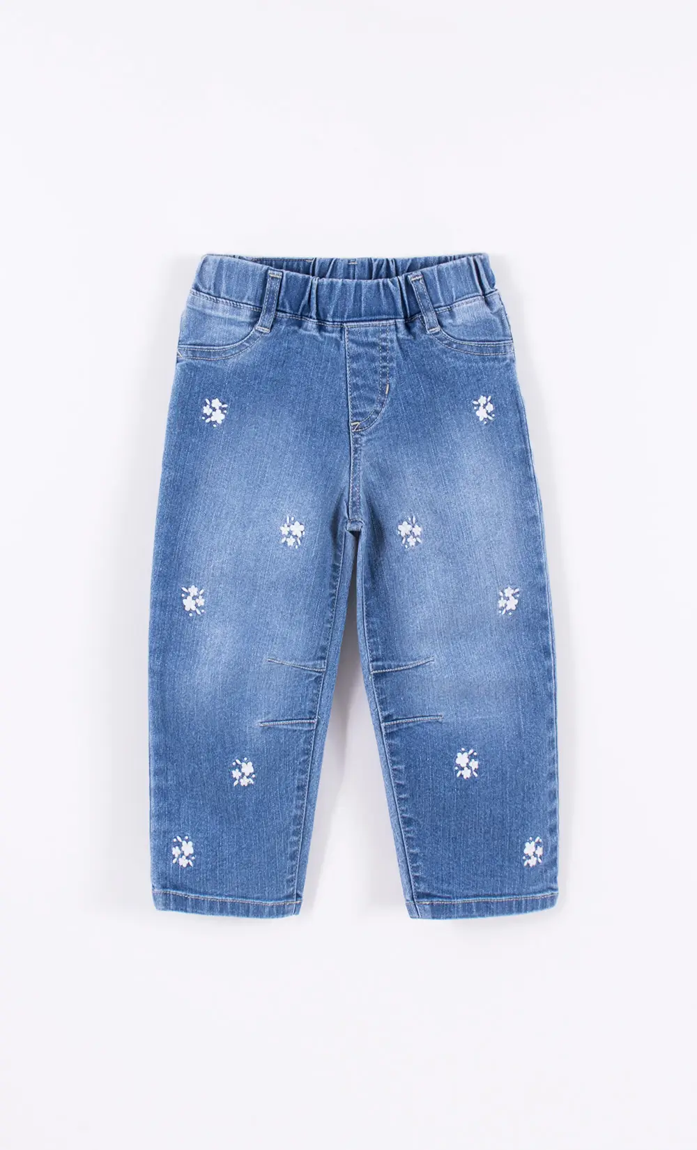 Pantalón de denim con elastano, bordado. Tiene elástico en la cintura. Calce Barrel. Composición: 80% algodón 19% poliéster 1% elastano Talles: del 02 al 04