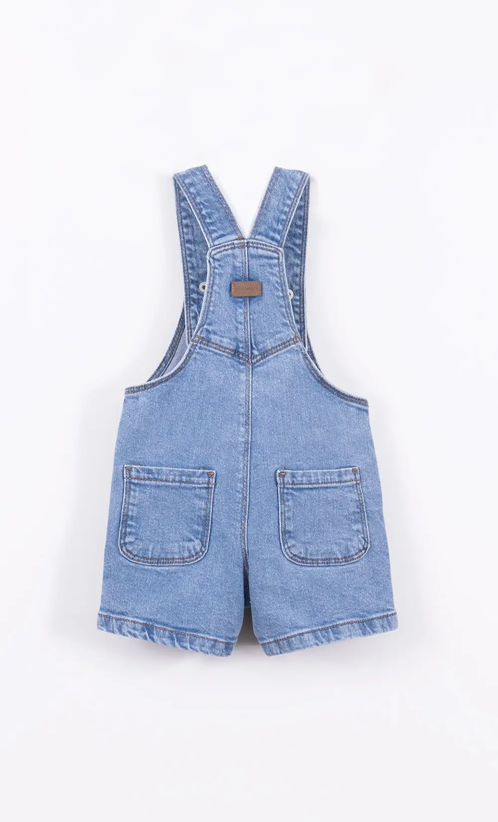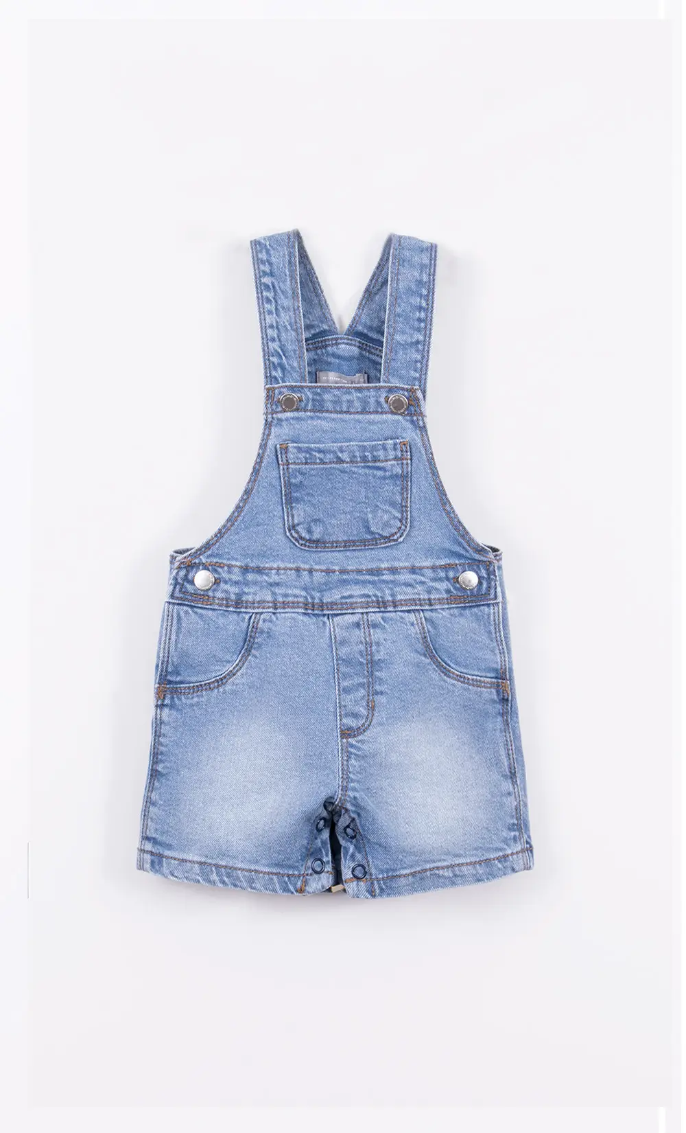 Jardinero de denim con elastano unisex. Con tiras ajustables, con botones metálicos en delantero y laterales, broches en entrepiernas.
