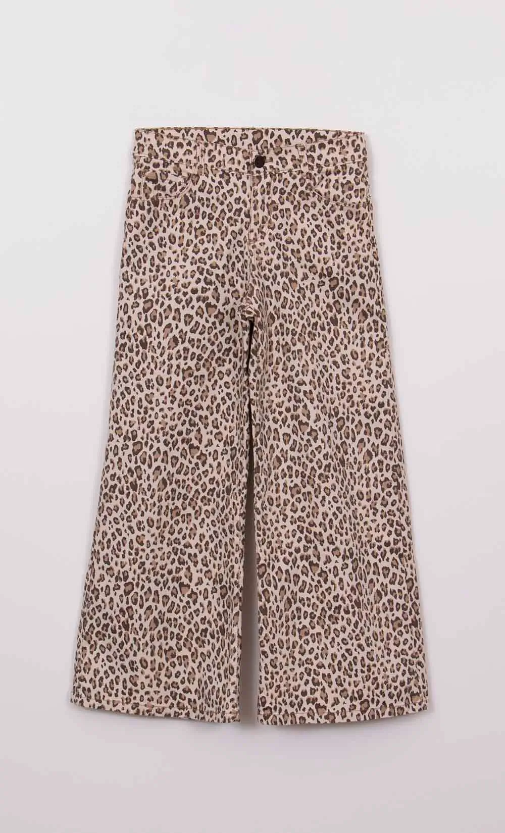Pantalón gabardina estampada.Tiene elástico en la cintura para regular el calce, broche metálico en centro delantero. Calce wide leg. Composición: 98% algodón – 2% elastano Talles: del 06 al 16