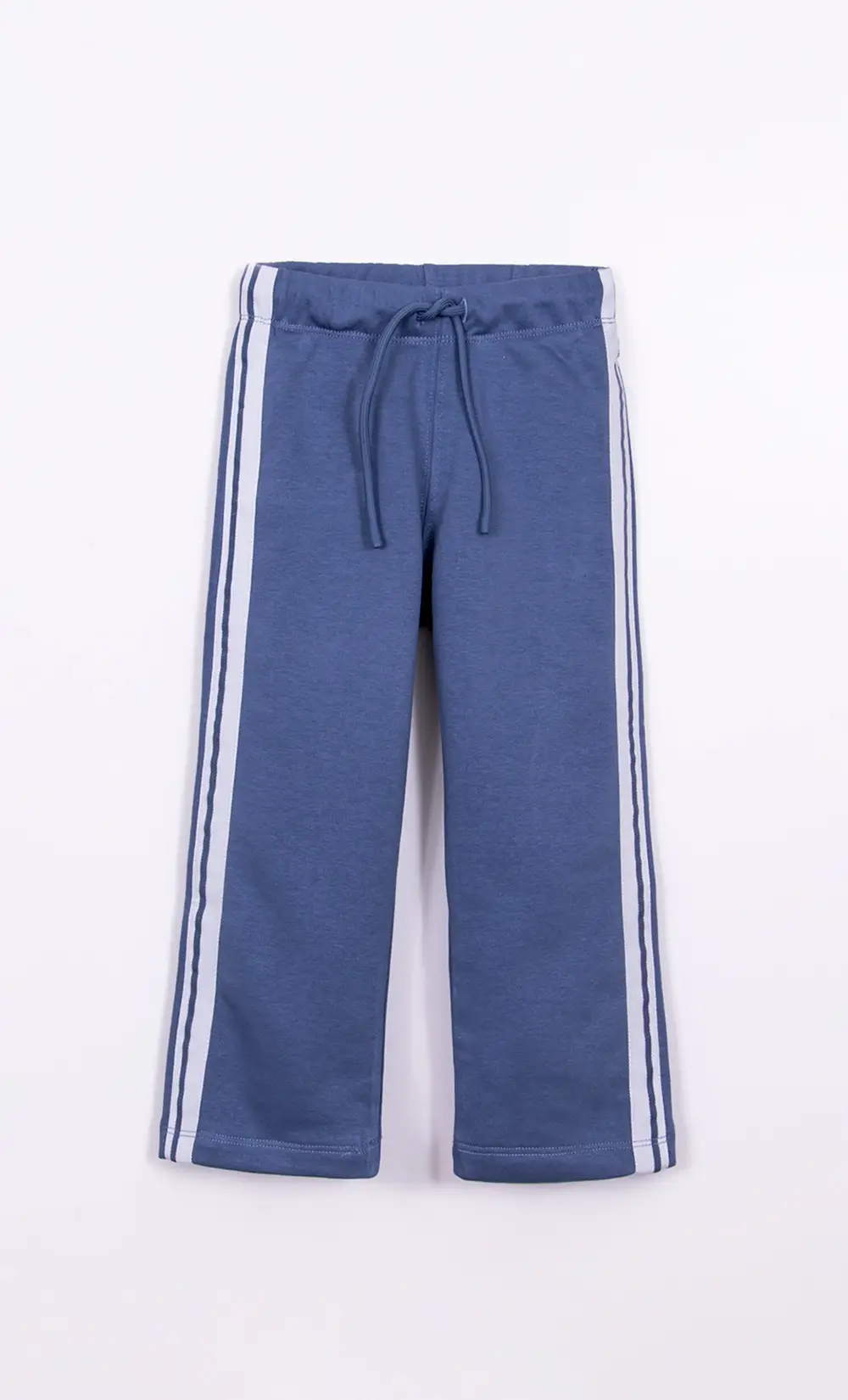 Pantalón de rústico, con elástico en cintura y cordón. Tiene tiras rayadas en laterales, su calce es ancho. Composición: 62% algodón 38% poliéster Talles: del 01 al 04