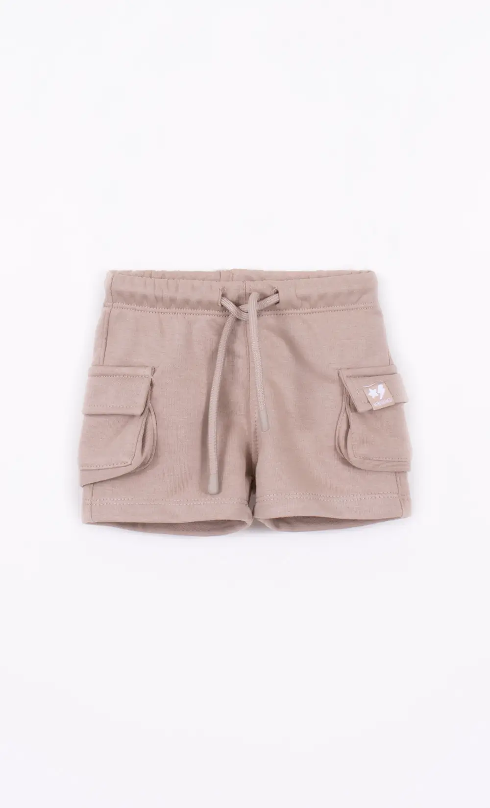 Bermuda cargo de rústico, con elástico y cordón en cintura.