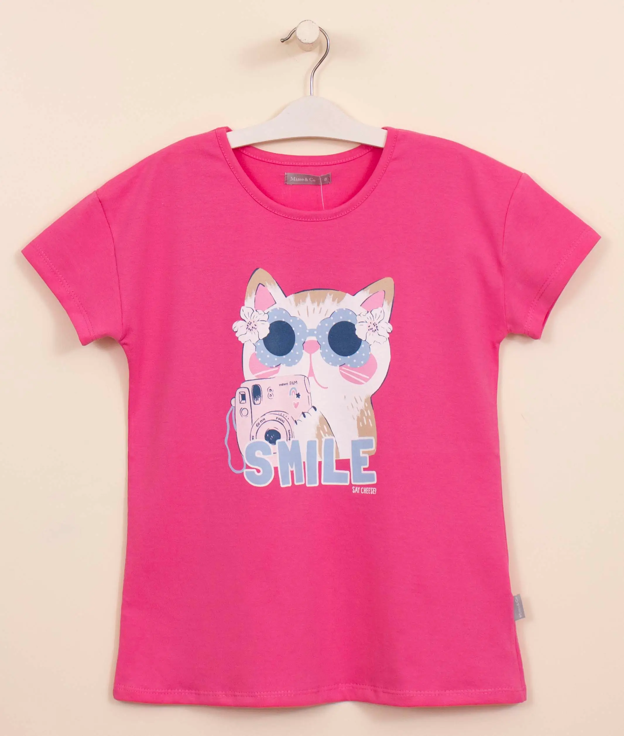 Remera de jersey con estampa. Larga y ancha. Composición: 100% algodón Talles: del 04 al 14