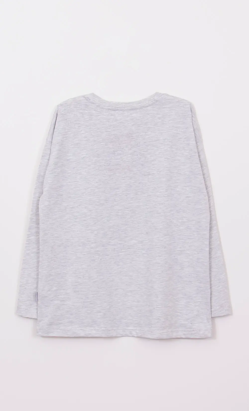 Remera de jersey malange oversize con estampa. Composición: 88% algodón 12% poliéster Talles: del 06 al 14